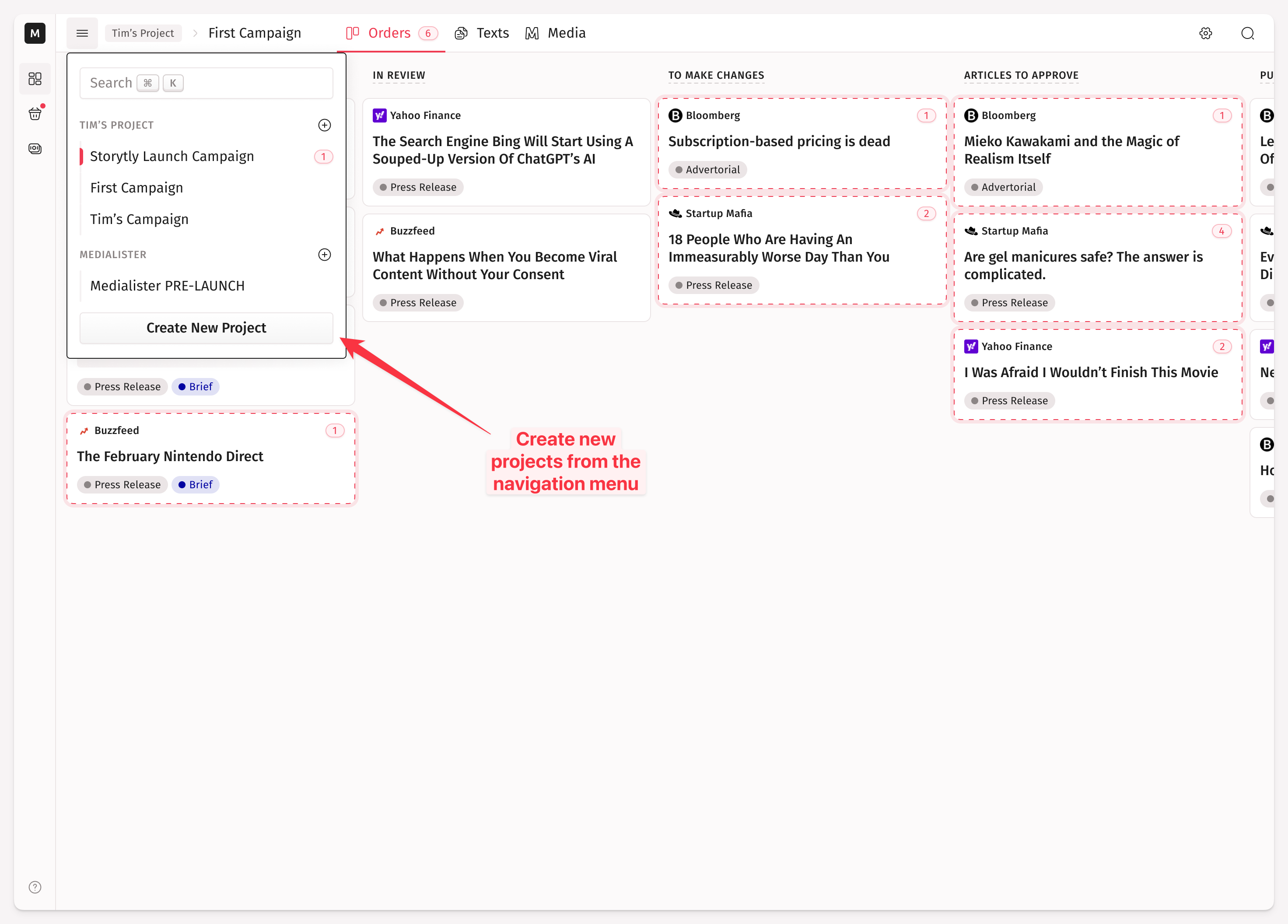If you have multiple marketing or PR teams, you can isolate their work with projects